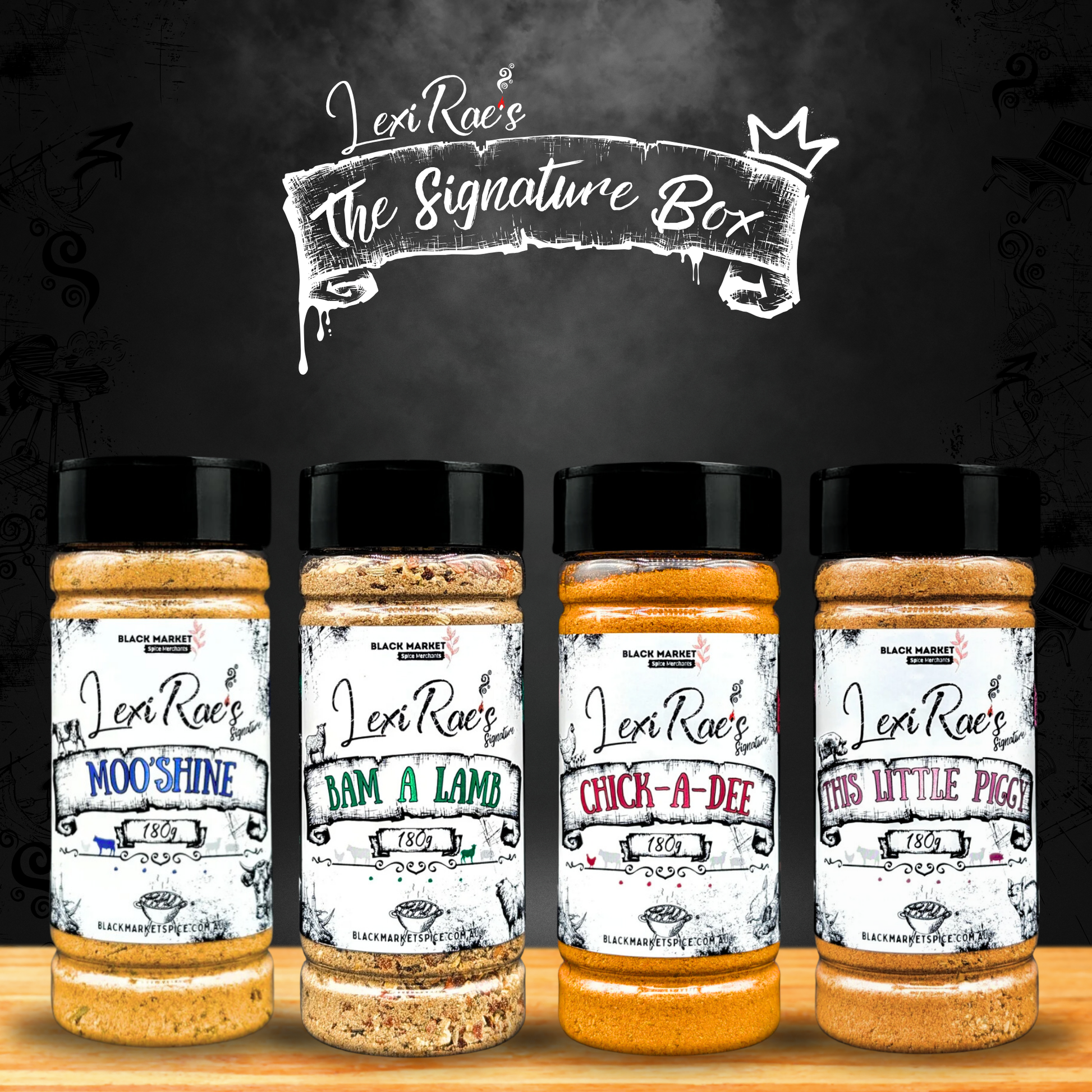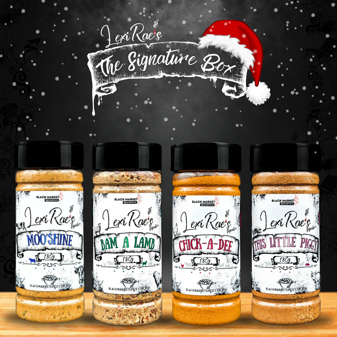 This Little Piggy: A Kansas style pork rub infused with a symphony of flavours from the earth. Mingling sweet & salty notes emboldened with a fiery spark of heat and a whisper of smoke.